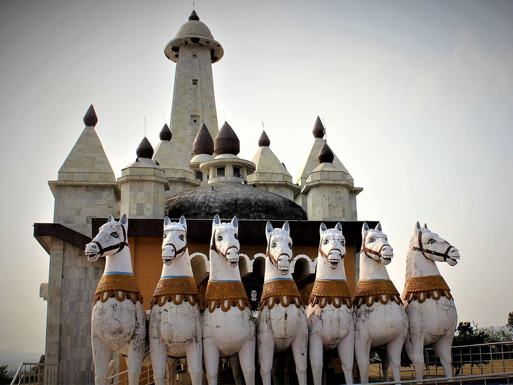 Elegant Sun temple in Ranchi, in the architectural form of a mammoth vehicle with 18 wheels driven by seven horses, is placed in a lush green lawn. The landscape is charming and the surrounding is very attractive. There is a sacred pond with calm and clean water, many devotees take a dip in this holy pond.